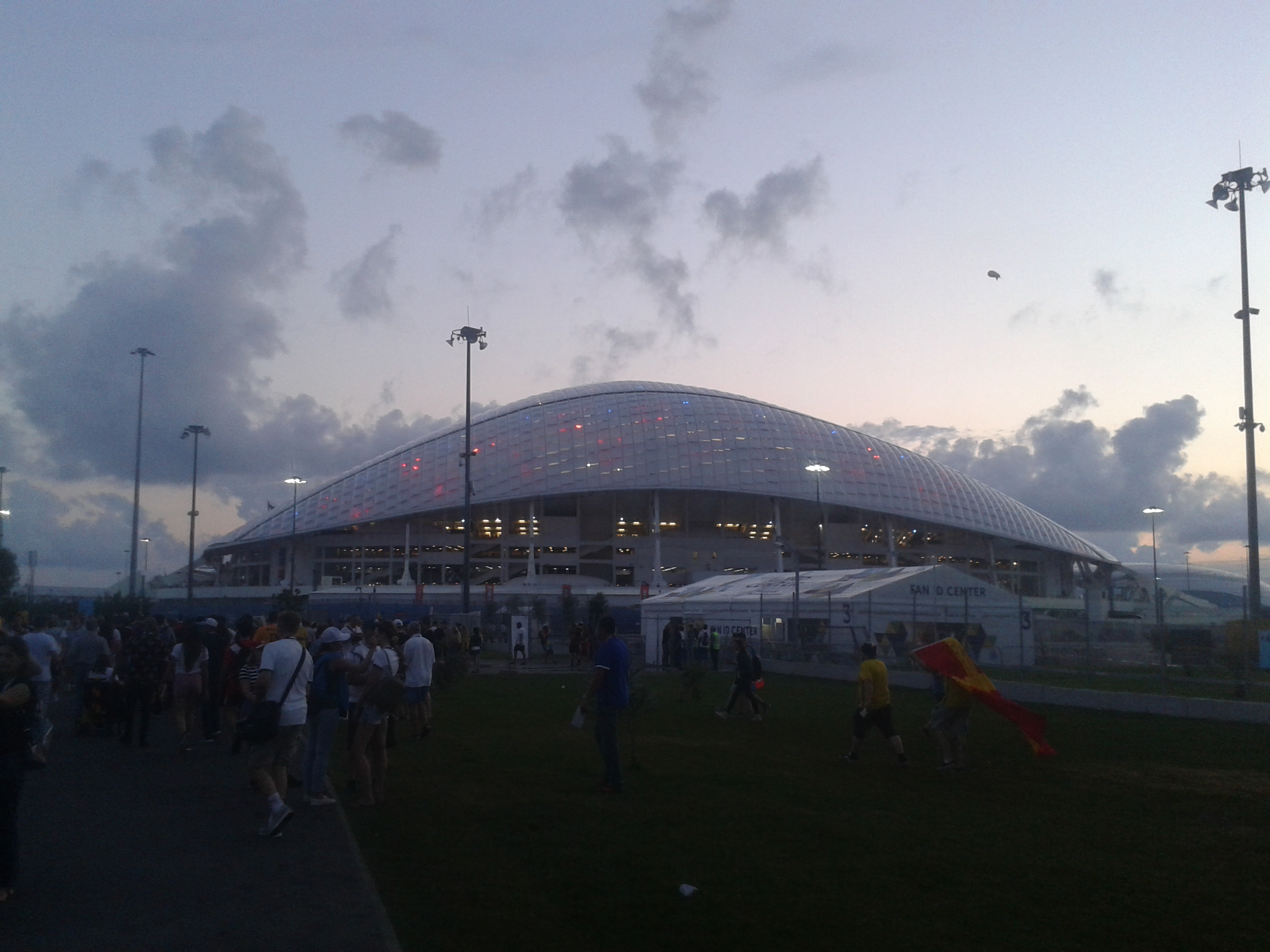 Der Wecker klingelte früh, kurz nach halb sieben. Die Dusche am Abend vorher hatte ich mir gespart, da der Tag recht angenehm vorbei ging. Daher mussten 15 Minuten weniger Schlaf und dafür die Dusche am Morgen herhalten. Das klappte eher schlecht als recht. Die Zeitverschiebung schlug ganz gut aufs Bewusstsein. Pünktlich halb acht verabschiedeten wir uns aus dem Hostel und suchten mit etwas Mühe die richtige Station für die Marschroutka. Am Flughafen, halbwegs wach, klappte alles reibungslos. Ein relativ holpriger Flug mit ein paar Turbulenzen brachte uns nach Adler. Die Stadt war genauso wie letztes Jahr. Touristisch überbevölkert, schmutzig und hektisch. Hier gab es zwar einige Shuttlebusse, aber man war eher an geldige Touristen und russische Urlauber angepasst, die ihre Kohlen rausballern. Ballermann quasi, man war nicht ganz so sehr wie bei den anderen Orten bemüht, es den WM-Fahrern recht zu machen. Dafür funktionierten hier aber Uber und der Happy Souflaki am Bahnhof Adler.