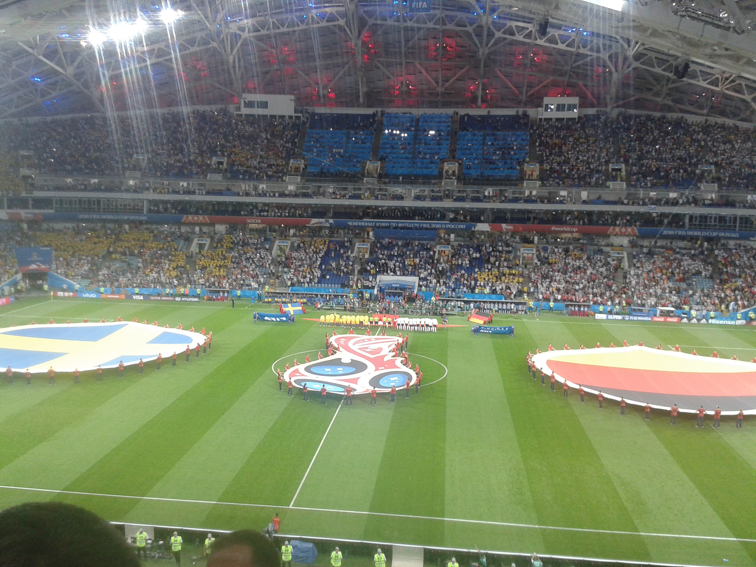 Ab hier sollte es wie gewohnt zu viert weitergehen. Erstmal wurde erneut im Souflaki was warmes gegessen, danach wurde im Hostel das Gepäck verstaut und wir uberten für 300 Rubel zum Stadiongelände. Dort war hinterhalb des gesperrten Bereichs recht viel Andrang. Die sportliche Ausgangslage war auch vollkommen klar. Ein Sieg musste gegen starke und selbstgewusste Schweden her, sonst wäre bereits drei Stunden später das Turnier aus. Allerhand selbstverliebte Vikinger sangen daher bereits “Deutschland, auf Wiedersehen”. Fragt sich nur, ob Schweden die dazu notwendige Achtel-, Viertel-, und Halbfinals packt.