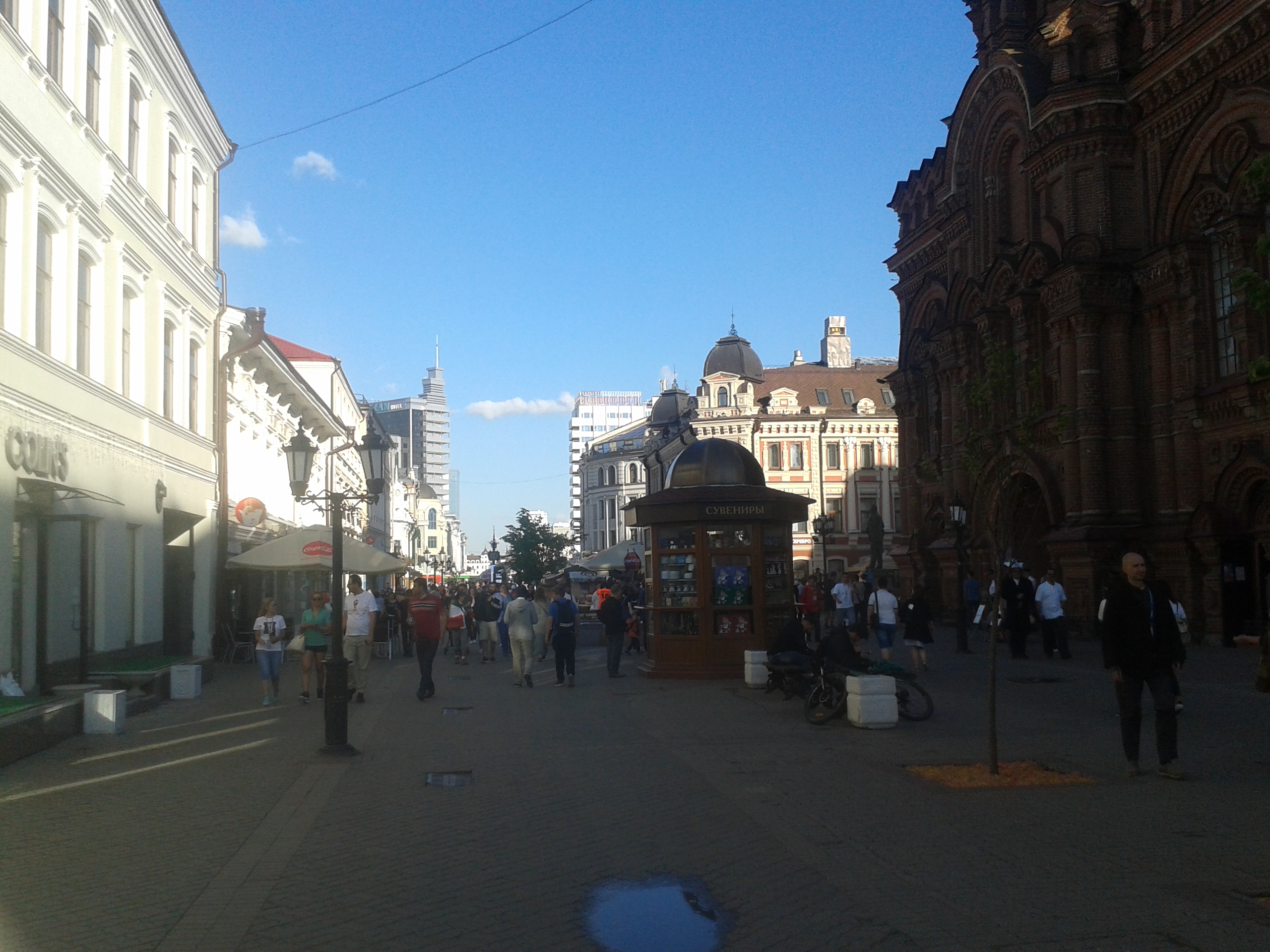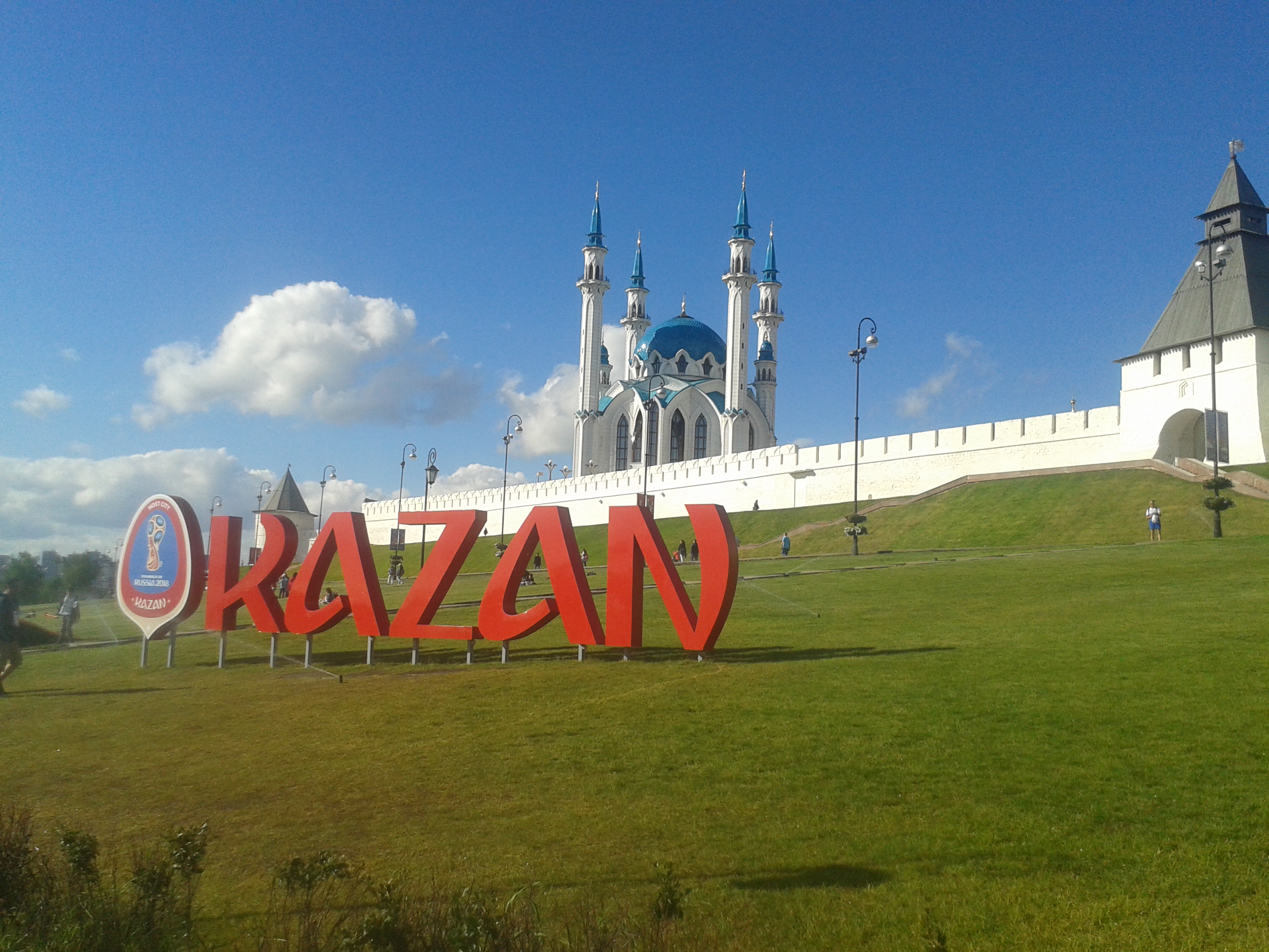 Mit Tagesgepäck ging es dann per Metro in Richtung Zentrum und Sightseeing. Die Hauptattraktion in dieser Stadt ist ganz klar der weißte Kreml mit der großen Moschee. Wir schlenderten in großer Gruppe, trennten uns aber bald auf um essen zu gehen. Zu weit wanderten wir durch die Fußgängerzone. Hier waren einige Iraner unterwegs. Die Präsenz der Spanier hielt sich dagegen sehr zurück. Sind halt auch keine Gruppenphasen-Gucker. Auf der Suche nach was anständigem zu Essen, fanden wir ein georgisches Restaurant. Preise waren mittel bis gehoben, aber noch okay. Die Portionen für den Preis angemessen. Der Laden war sonst sehr gemütlich. Den großen Umsatz schienen sie abends mit harten Getränken zu machen. Meine Begleitung hatte es mangels Ticket etwas eiliger aufzubrechen. Am Ende der Fußgängerzone schloß ich mich in einer Pizzeria wieder der größeren Gruppe an und fuhr mit den Jungs zum Stadion.