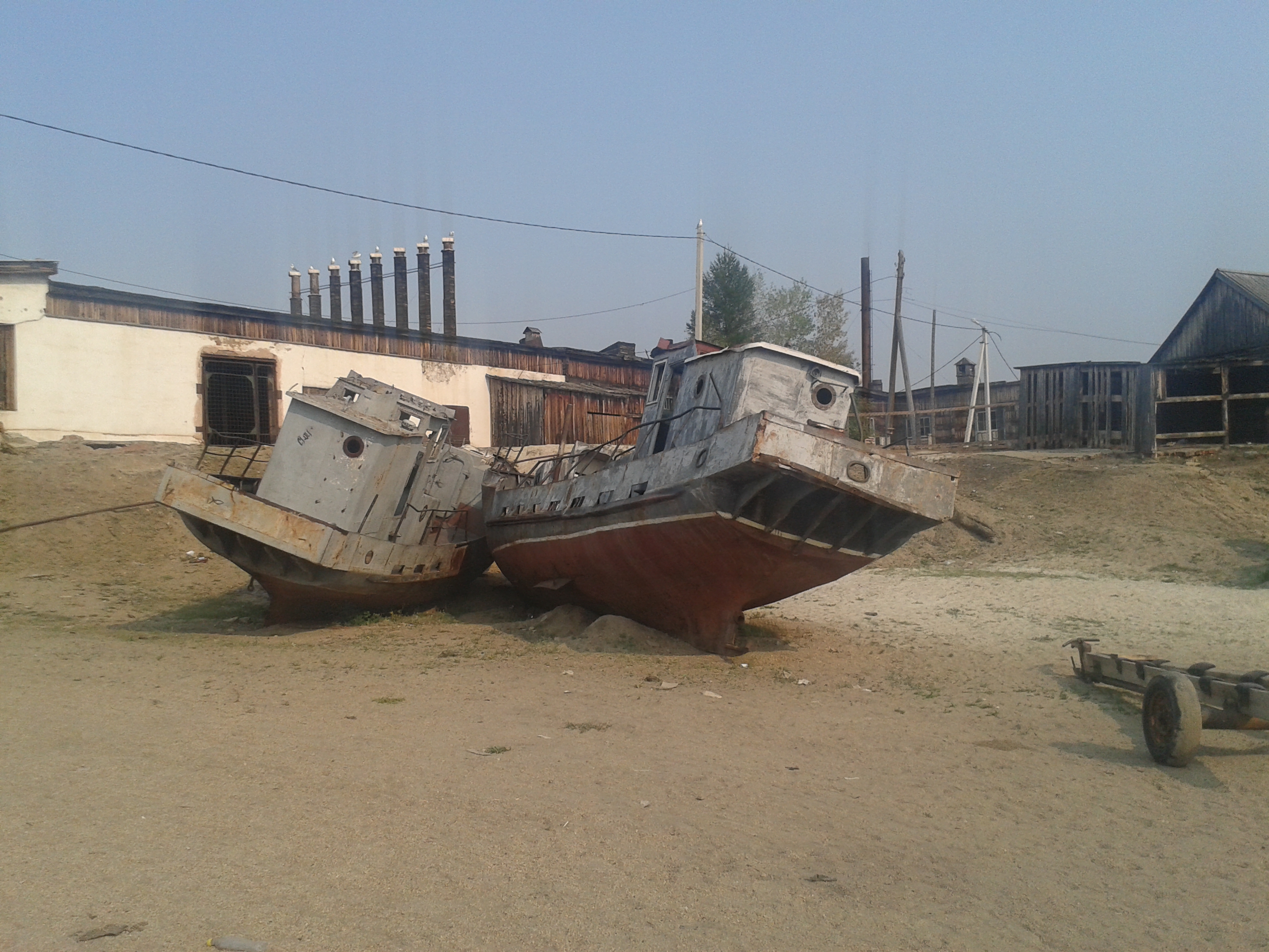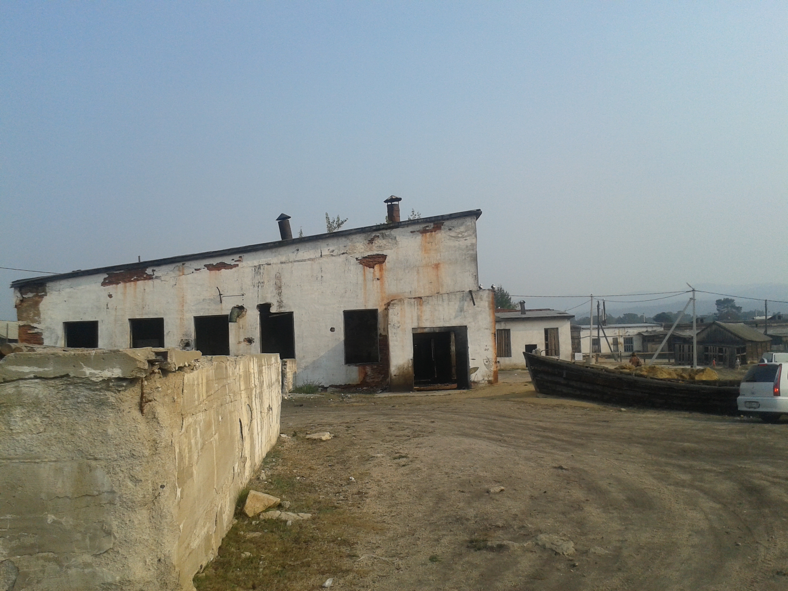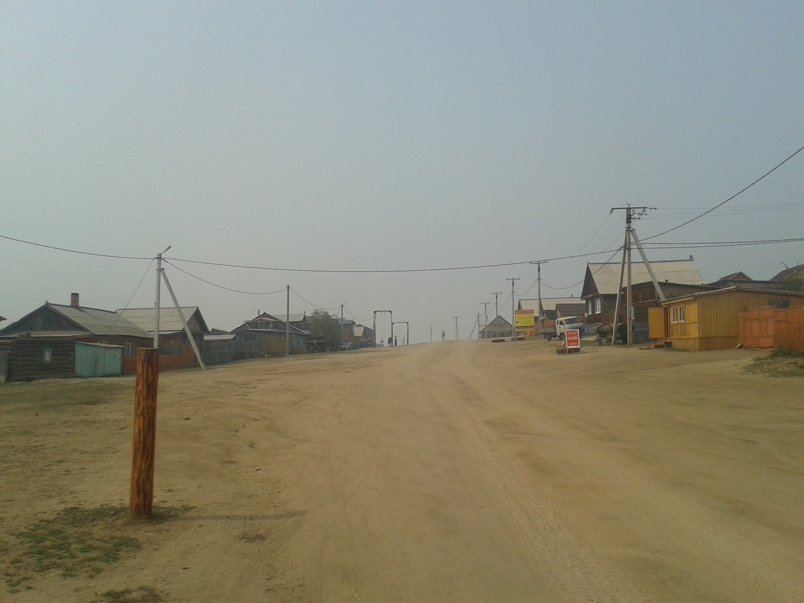 Weiter ging es dann durch leicht bewaldetes Gebiet zu einem weiteren Dorf, aber sehr viel kleiner als Khuzhir. Hier lebten nur noch 1500 Menschen und das ganze Jahr über nur drei Familien. Früher war das aber mal das größte Dorf der Insel und ein Gefängnis für Verbannte aus der Zeit Stalins. Man erkannte noch die Reste eines Bootsanlegers und einer Rampe, die vom Wasser weg hinein in den Ort führte. Am Ende der Straße ortsauswärts gab es ein hölzernes Kreuz für die dort im Gefängnis gestorben Menschen.