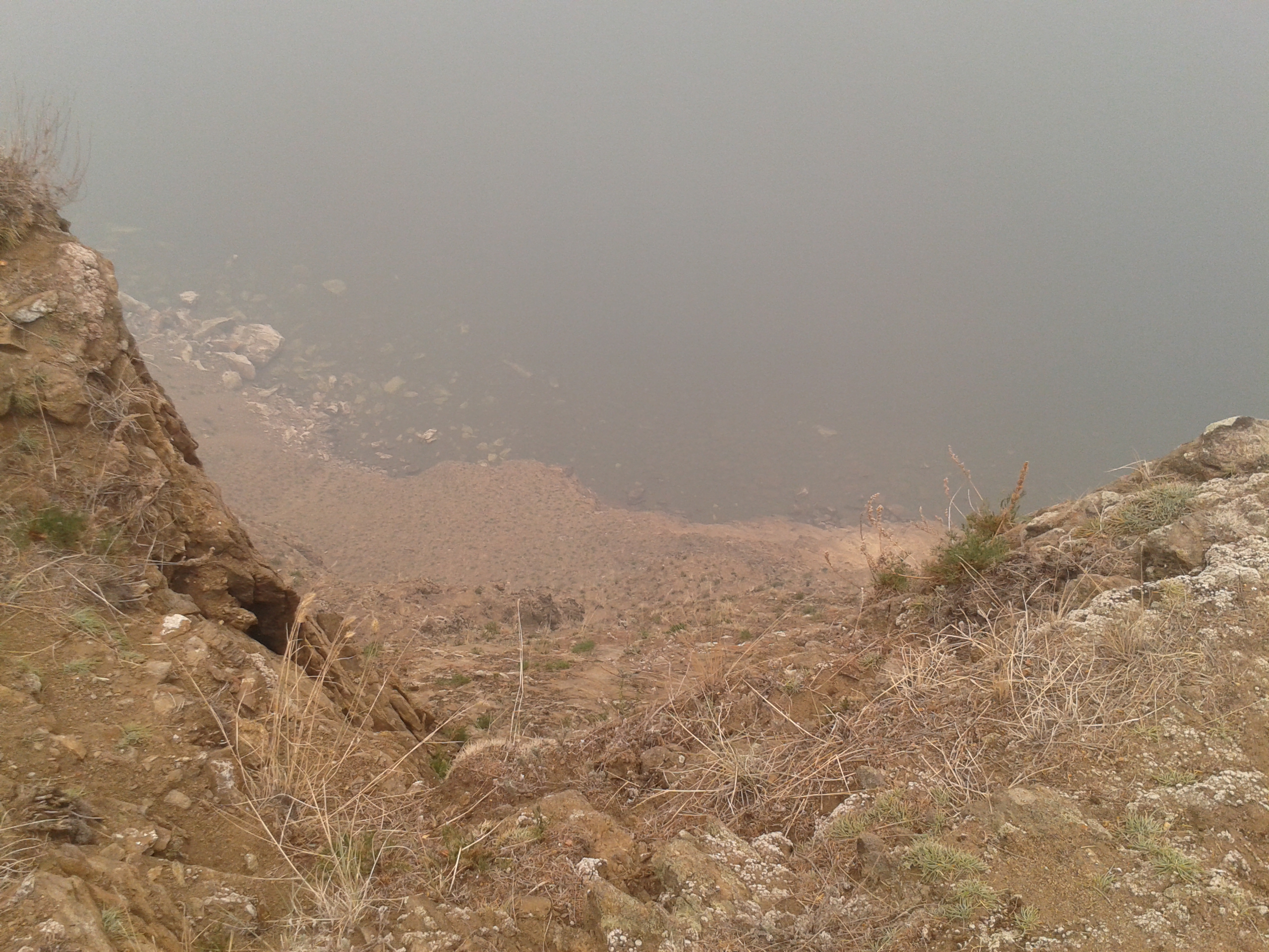Die Luft wurde immer dichter, schlechter und der Rauch der letzten Tage war nun endgültig klar als Waldbrandgeruch in der Nase spürbar. Schien was größeres zu sein, aber nicht auf der Insel. Wir machten nochmal etwa 4km vor der Spitze einen kurzen Halt, wo man eigentlich eine gute Aussicht auf das Wasser haben sollte, was 200m weiter unten brandet. Hatten wir nicht, es gab hier keine 200m Sichtweite mehr, so dicht war der Rauch. So fuhren wir nach kurzem Stop weiter bis zur letzten Position wo Autos die Exkursionsteilnehmer möglichst nah an der Inselspitze absetzen konnten. Danach mussten alle zu Fuß weiter gehen, während die Fahrer die Busse schonmal an einen vereinbarten Platz fuhren und das Essen kochten.