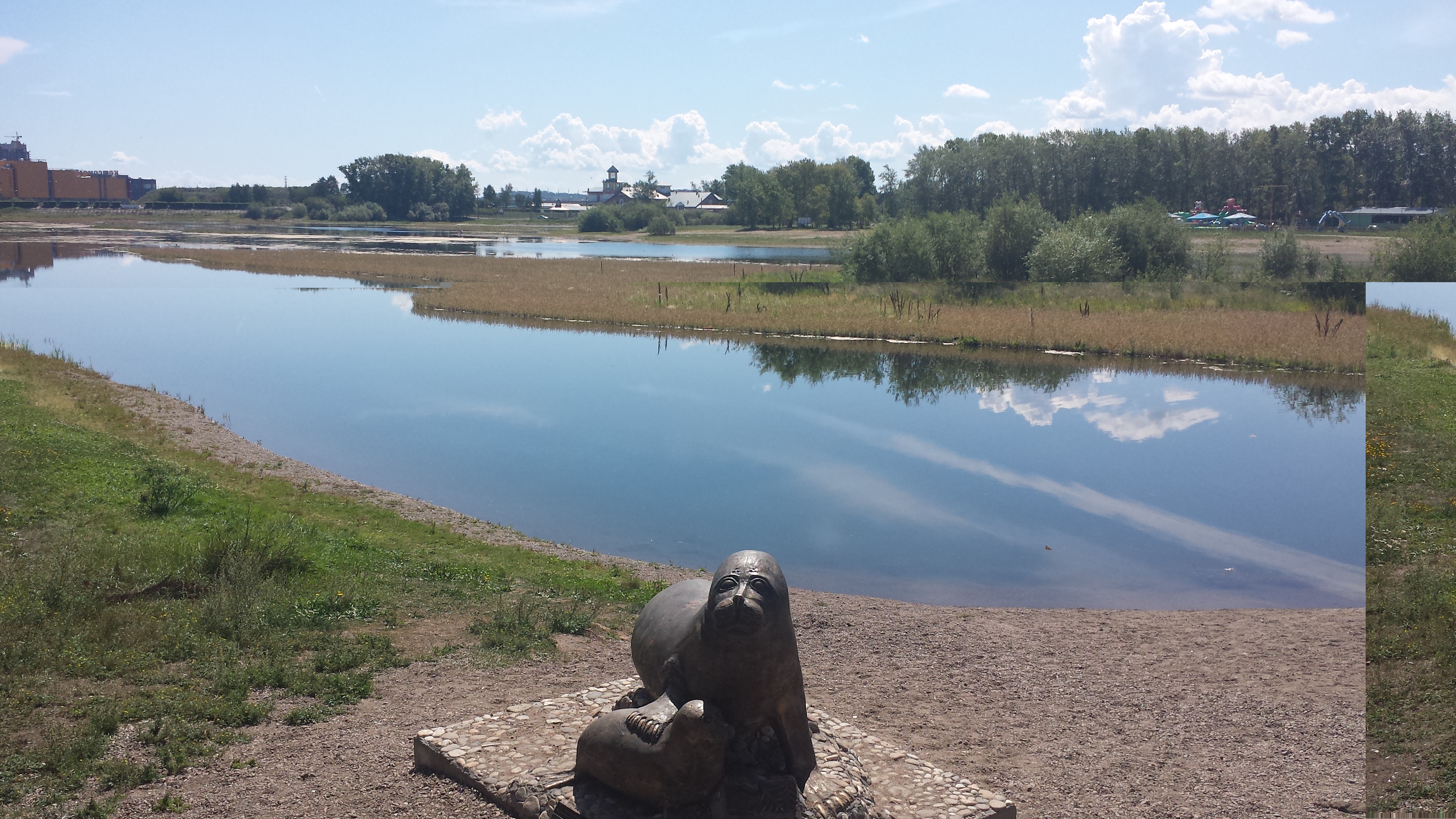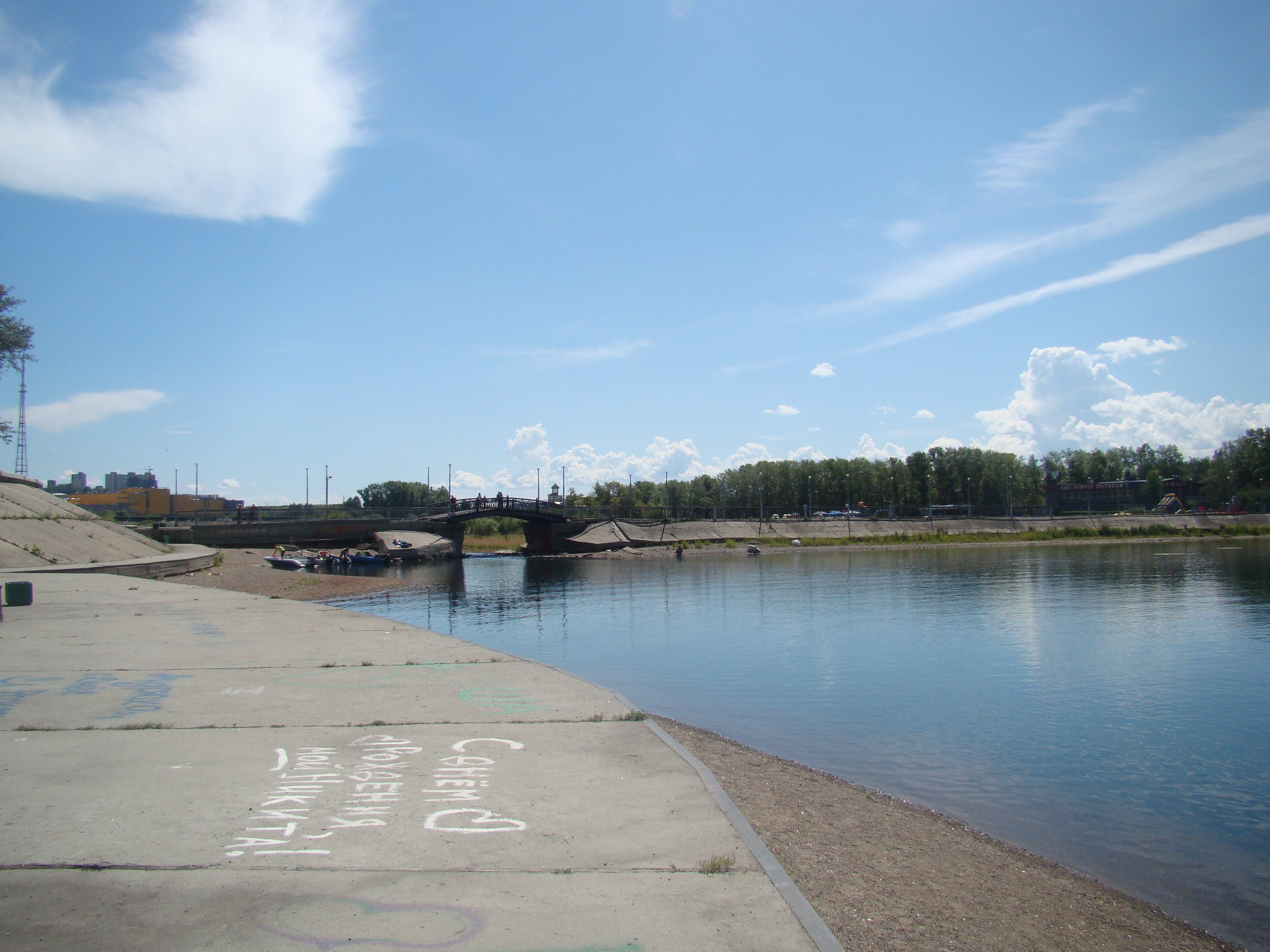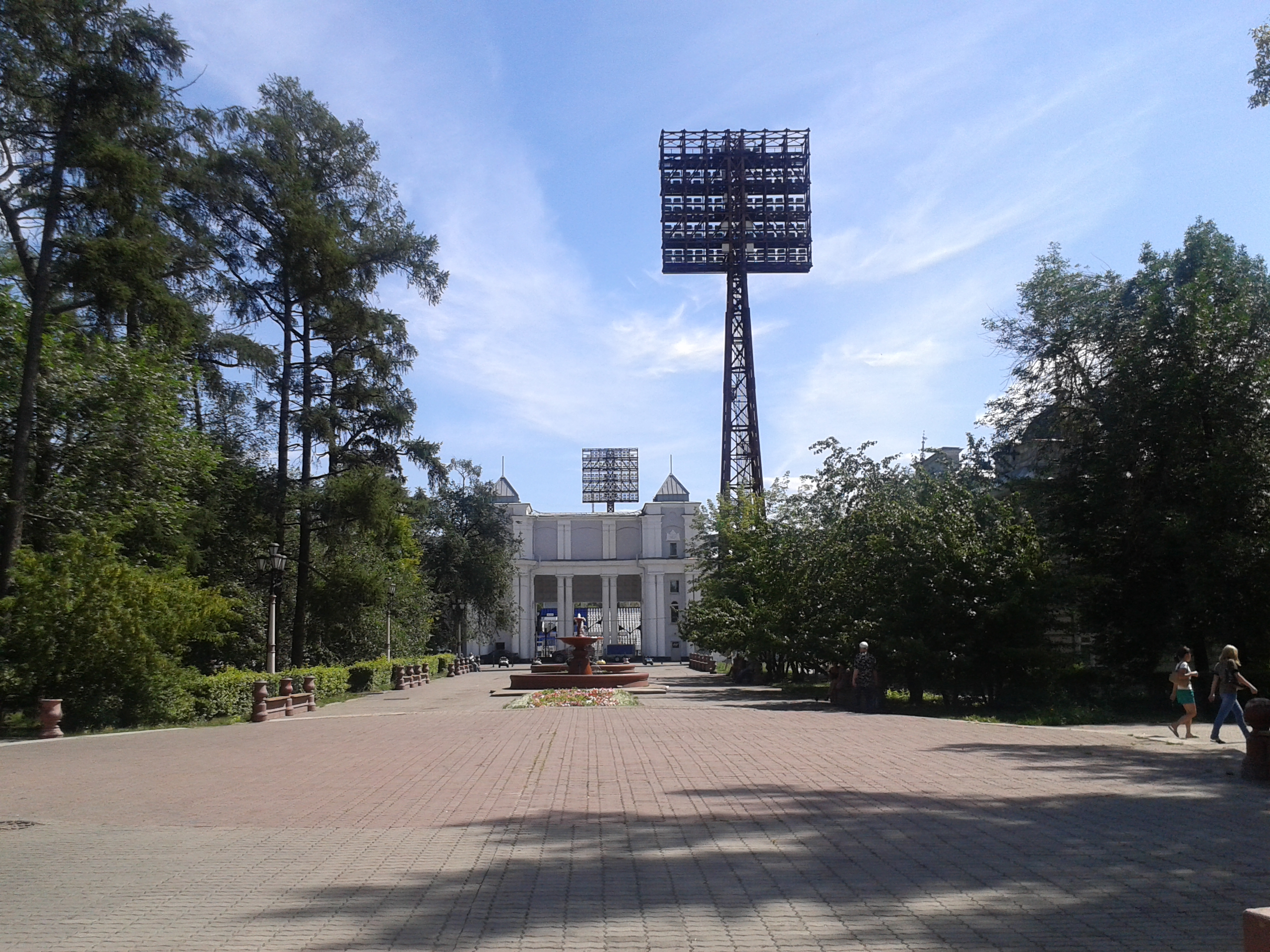Wir wanderten noch einwenig am Ufer der Angara in einer Art Promenade entlang, (be)suchten unterwegs den Final des gelösten Multicaches und ließen uns die Sonne auf den Pelz brennen. Auf der Angara-Insel Yunost durchschlederten wir die Station der dortigen Kindereisenbahn und liefen dann am Stadion vorbei in Richtung Altstadt zurück.
