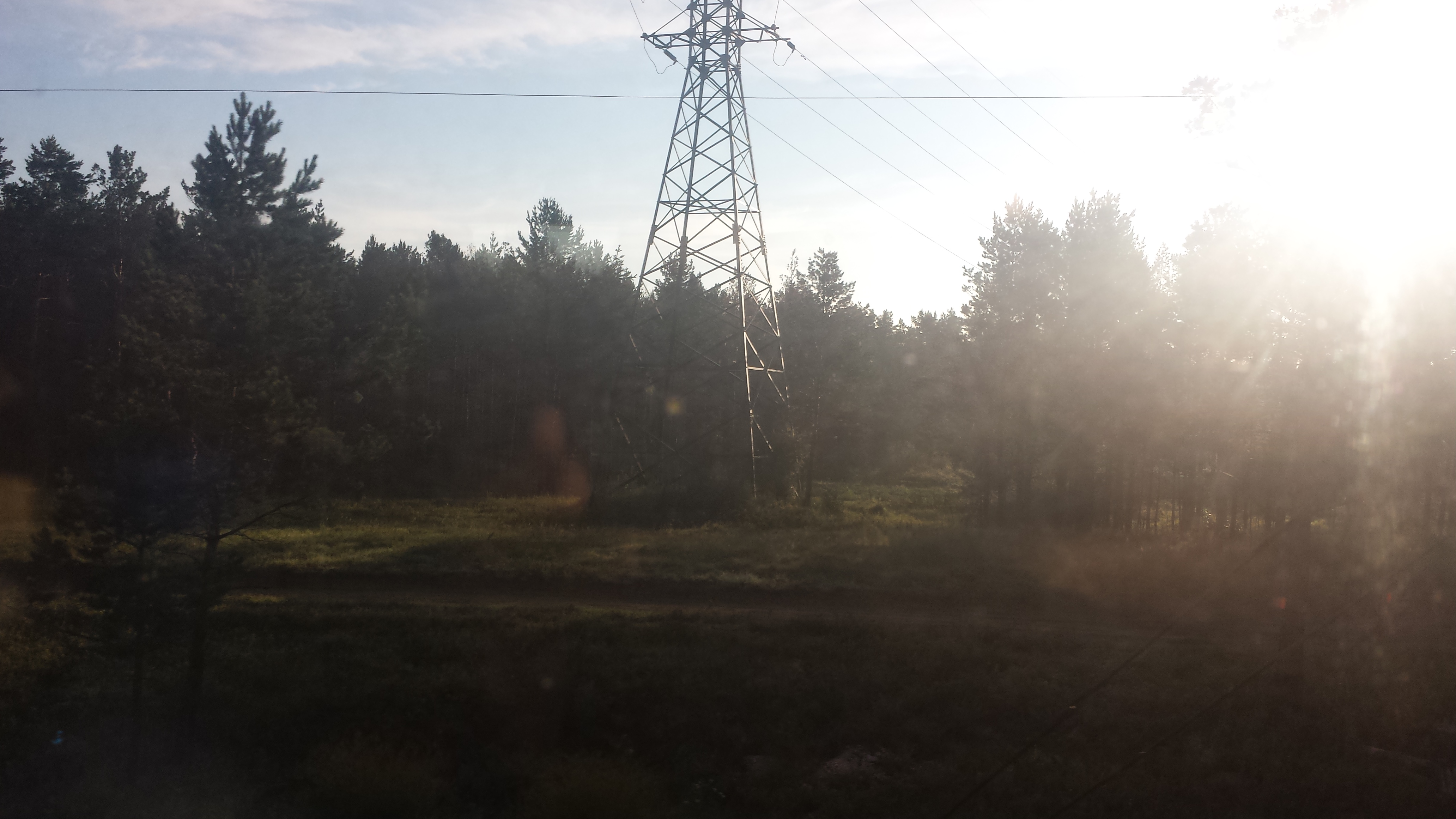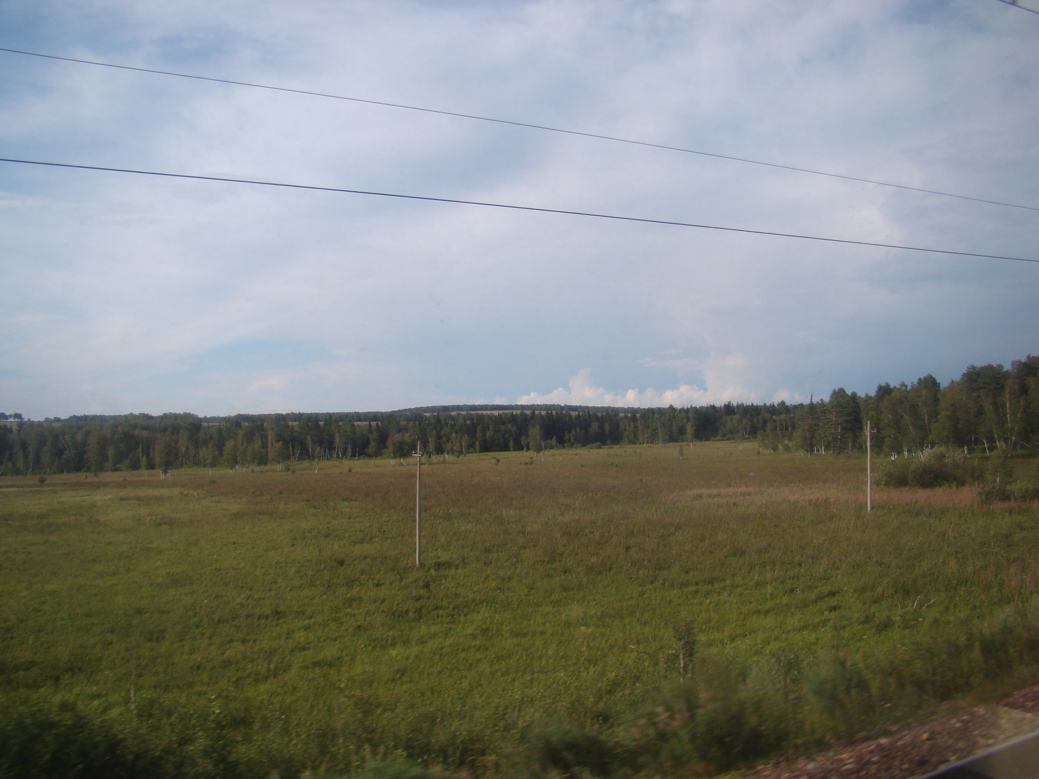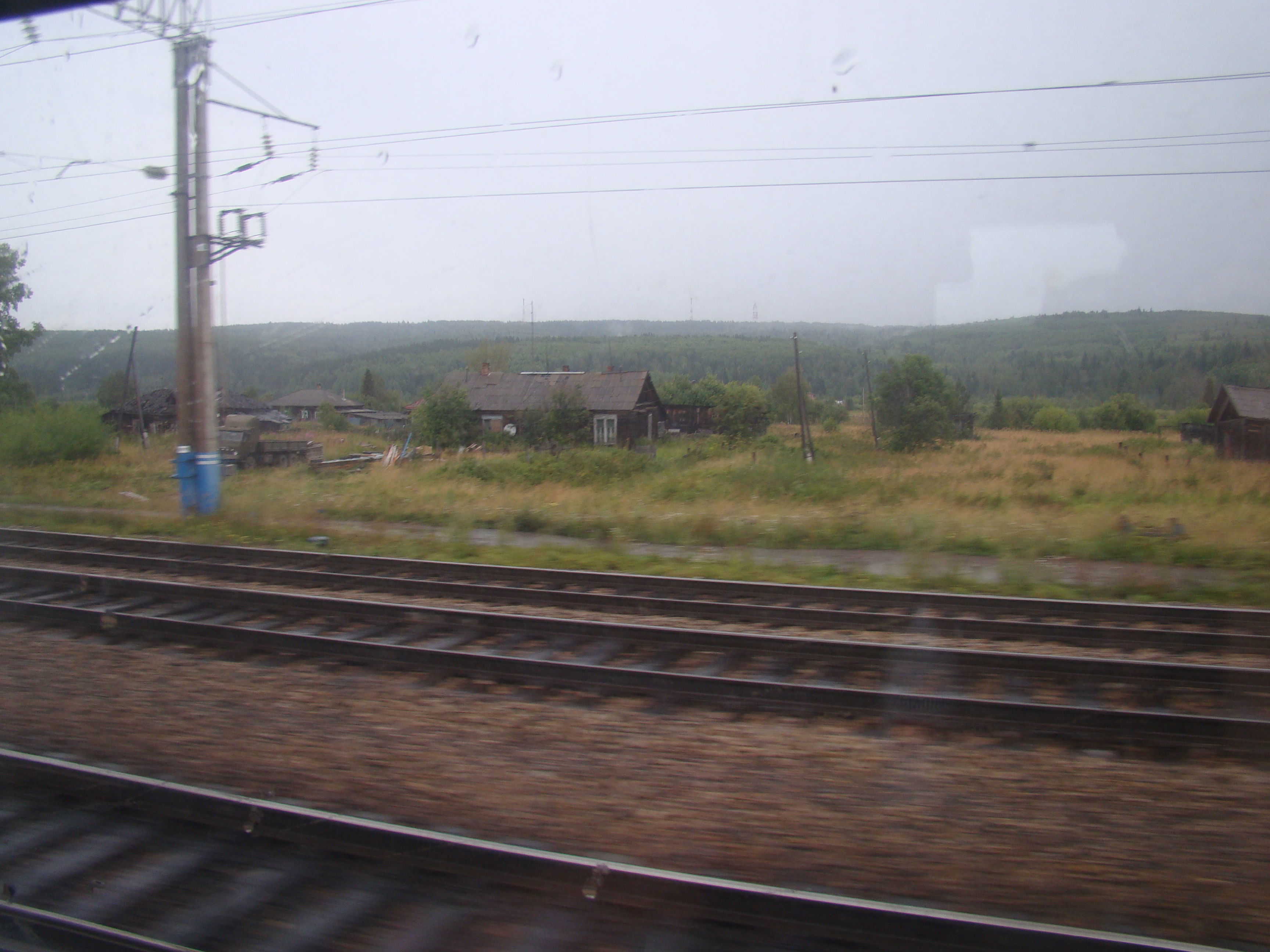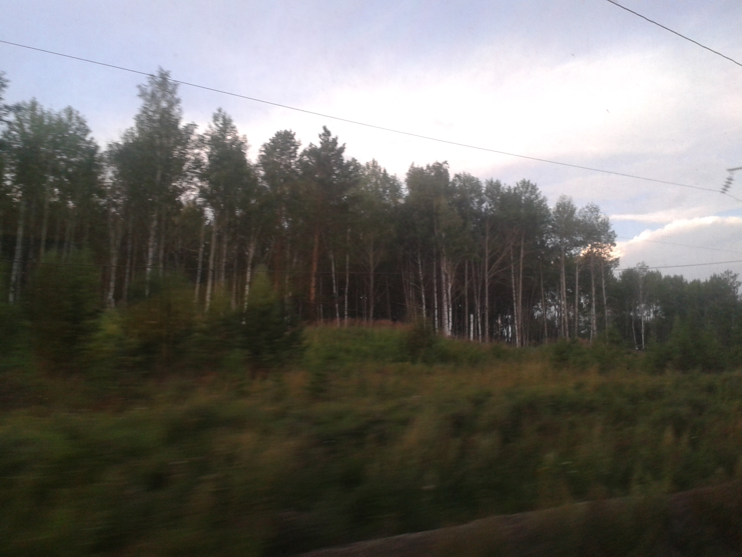 Wir hatten das Abteil quasi allein für uns. Unser einziger Mitreisender in einem der oberen Betten hatte alles Hab und Gut bei seiner Familie nebenan untergebracht, ansonsten blieb das vierte Bett frei. Nach einer unruhigen Fahrt aufgewacht, rollte der Zug gerade durch die Taiga. Viele Nadelbaumwälder und immer wieder Birken, Birken, Birken. Die Landschaft war hier sehr bergig.