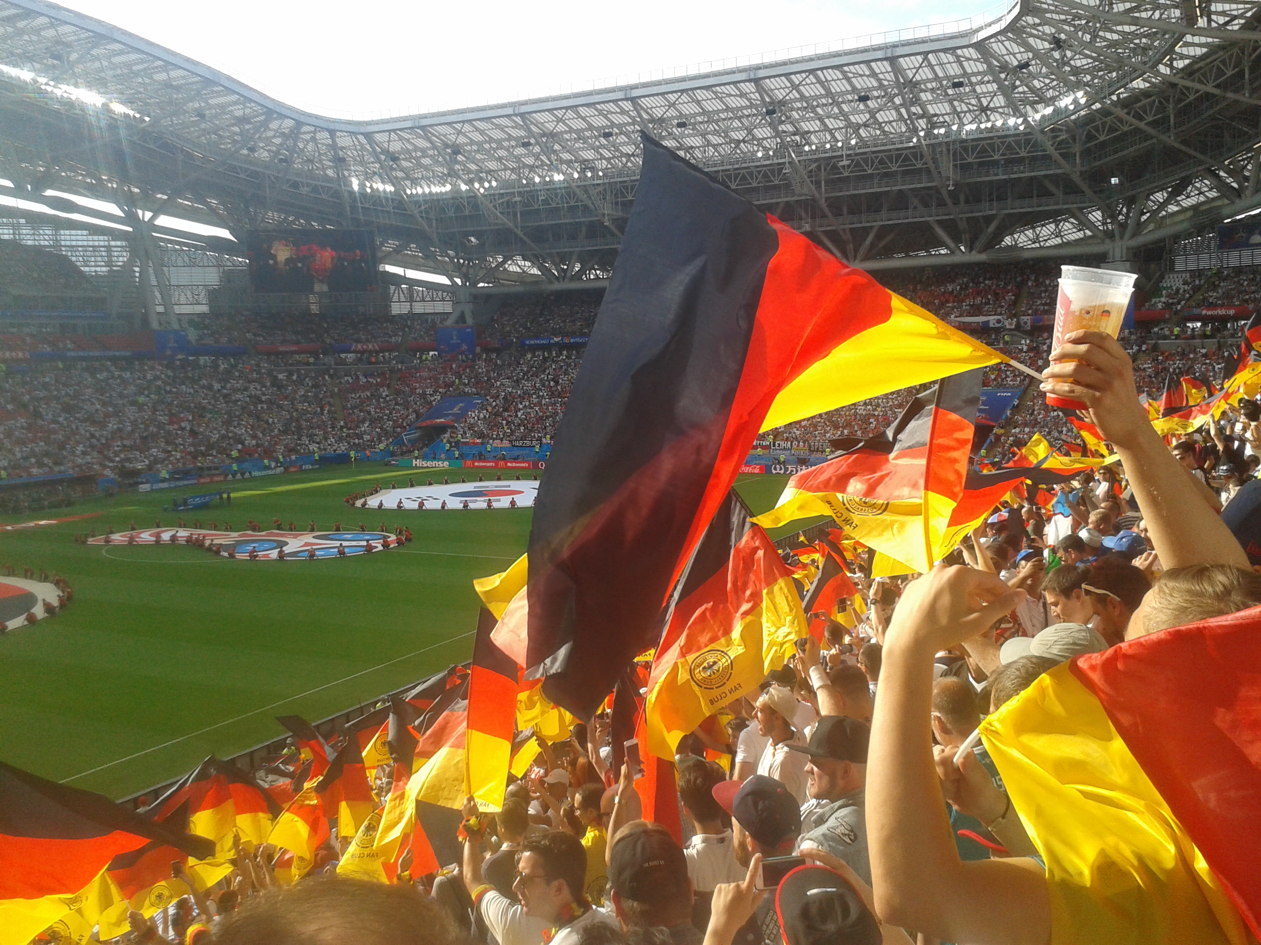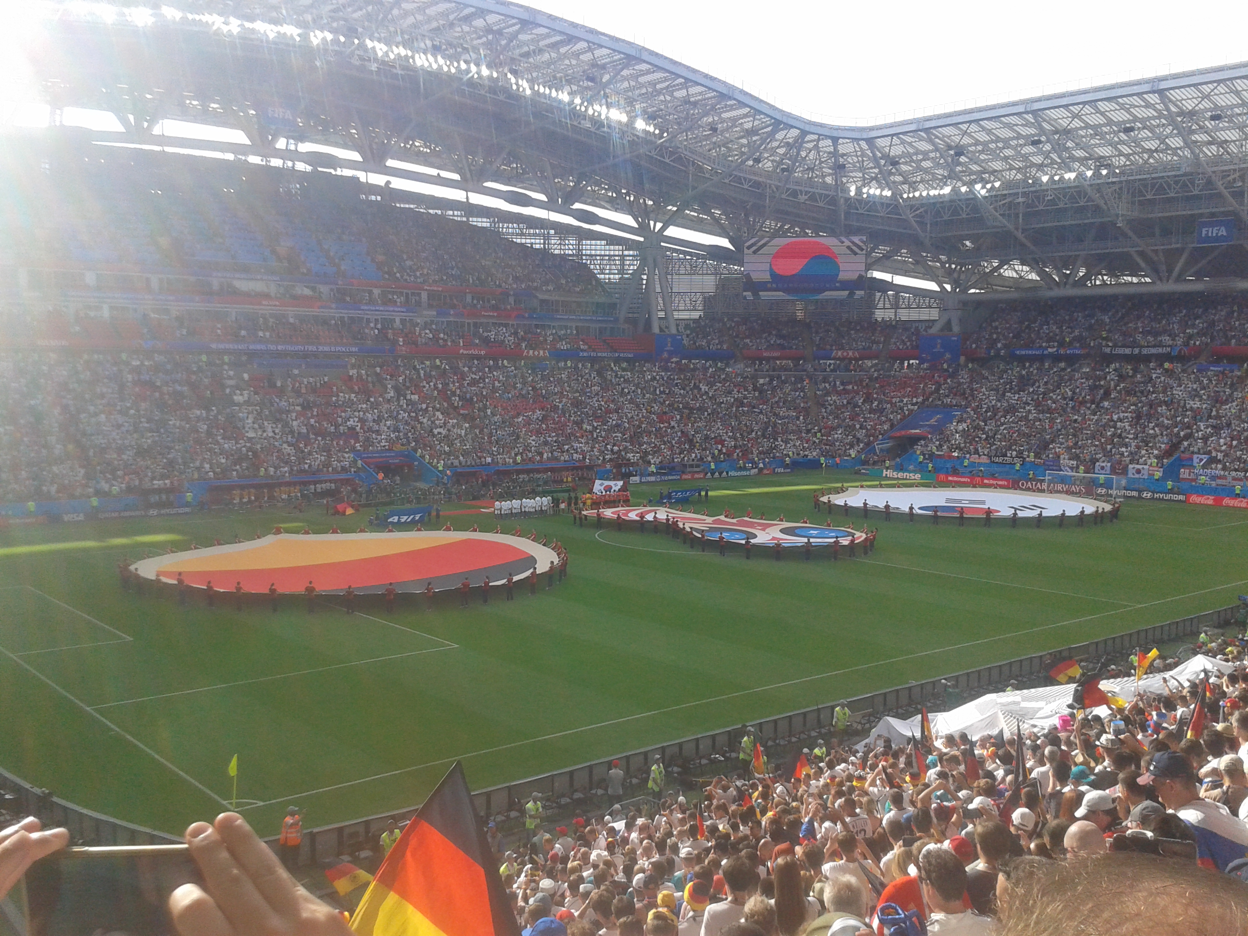 Erneut ging es per Tram den Weg zum Stadion bis zur abgesperrten Zone, danach weiter zu Fuß. Anspannnung machte sich breit, jedich war ich recht zuversichtlich, dass Deutschland es packen würde. Schließlich hatte der Weltmeister das Schicksal in der eigenen Hand. In der ersten Halbzeit schien und die Sonne stark ins Gesicht. Was aber auf dem Rasen abgeliefert wurde, war keines blendend. Getoppt wurde das durch eine Reihe an hochkarätigster Inkompetenz, die je eine WM-Mannschaft gezeigt hat, mit Ausnahme von Frankreich 2010. Das Sahnehäubchen für jeden Fußballfan war dann die Entscheidung per Videobeweis. Das frühe Aus ging mit den gezeigten Leistungen absolut in Ordnung. Die Konsequenzen sind in der Fülle kaum absehbar. Führt man sich den Weg des DFB und das Auftreten gegenüber der großen Basis an Fußballfans in Deutschland vor Augen (“Krieg dem DFB”), werden es in Zukunft womöglich keine ausverkauften Testspiele mehr in Gladbach für die 25 Euro-Karte geben. Definitiv wird sich der kleine Mitarbeiter als Mikrobe im Speck des großen Business den Gürtel enger Schnallen müssen. Man wird sehen. Das nächste Spiel in München am 06.09.2018 könnte zum üblen Pfeiffkonzert werden.