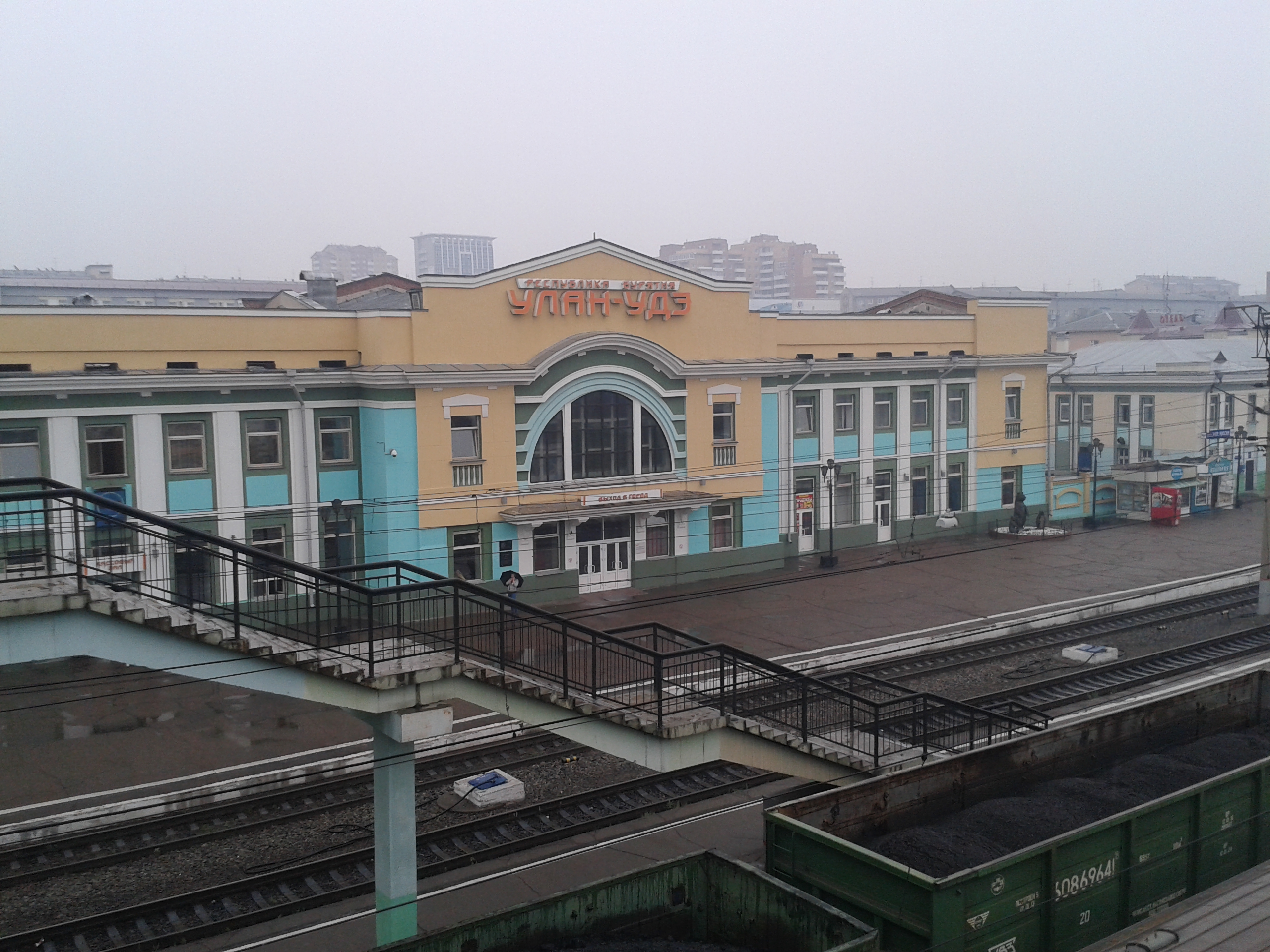 Ulan-Ude kommte einem bei Ankunft erstmal vor wie eine Industriestadt, so der erste Eindruck von Bahnhof und Umfeld. Viele Güterwaggons auf den Nachbargleisen mit Kohle und Öl. Man merkt hier eindeutig die Kreuzung der Bahnlinien zur Mongolei und China sowie der Transsib-Route. Ein paar Wegminuten vom Bahnhof weg hatte man schon andere Eindrücke gewonnen: Eine Stadt mit postkommunistischem Flair aber auch einigen modernen Neubauten. Wir fanden unser Hotel zentral gelegen in der Fußgängerzone, die mit bunten Blümchen recht hübsch hergerichtet war. Die Luft war hier etwas sauberer als auf Olchon, aber etwas Rauch roch man doch noch.